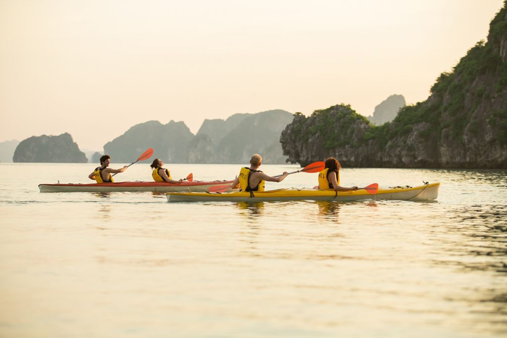 If you stay on board for 2 consecutive nights, the same Dragon Legend hotel boat will accompany you for all activities, all passengers remain together during the cruise, and there is a BBQ meal on the beach.Onboard, there is an English-speaking guide and a 24-hour reception. Activities on the boat include kayaking, tai chi, fishing, and optional spa treatments. An exceptional cruising experience in Bai Tu Long Bay
