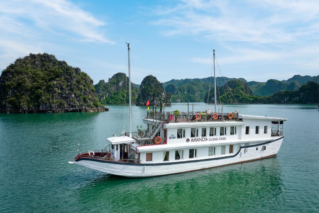 Amanda Legend Cruise is a wooden boat in Halong Bay that has 5 cabins decorated in traditional Vietnamese style and with a wellness theme.