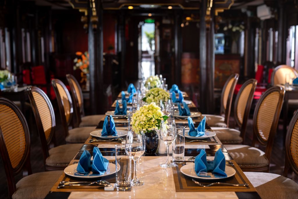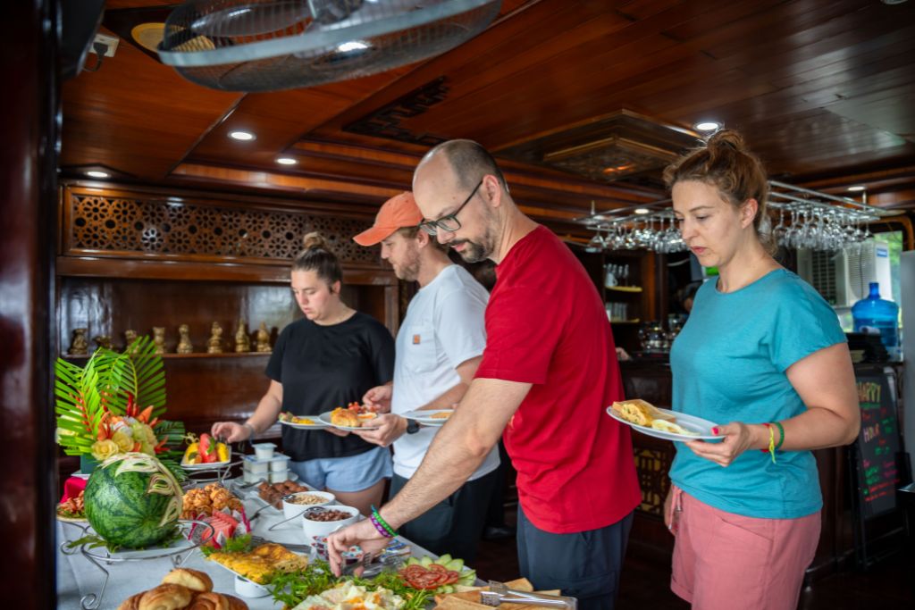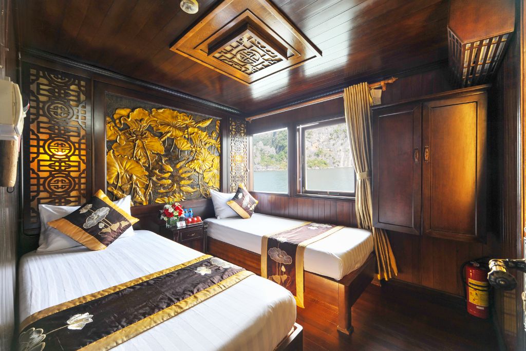 La croisière Renea comprend 4 jonques de charme en bois de 11 cabines, 12 cabines , 13 cabines et 14 cabines qui sont conçues dans un style traditionnel d’inspiration orientale, et possèdent une terrasse bien exposée et un équipage sympathique. La croisière Renea vous propose des excursions dans la Baie de Bai Tu Long selon un itinéraire loin des sentiers battus. À bord du bateau, il y a un guide anglophone. La croisière Renea est un choix idéal pour la boutique croisière de 3 étoiles en Baie de Bai Tu Long.