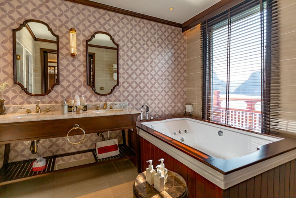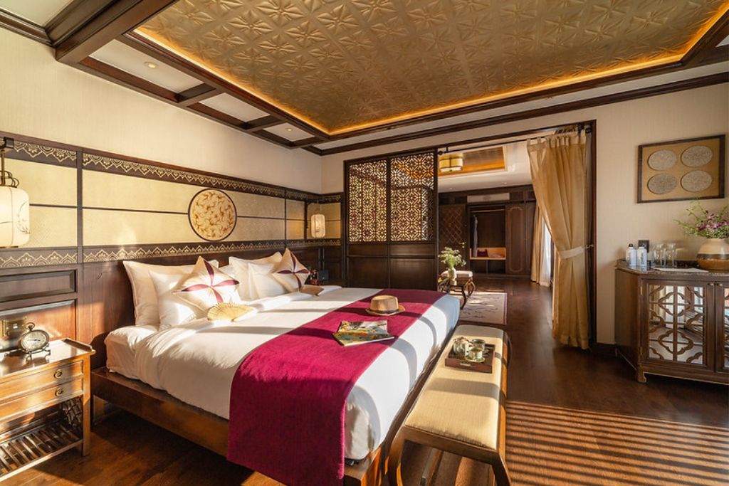 Ylang est une croisière luxueuse de petite taille en Baie de Lan Ha qui est bien équipée et décorée selon l’architecture traditionnelle asiatique et vietnamien. Une fois monter à bord, vous avez l’impression d’être dans un ancien royaume royal : des meubles en bois de marbre orné de motifs décoratifs vietnamiens par excellence tels que des fleurs de lotus et des portes en bois ornées.