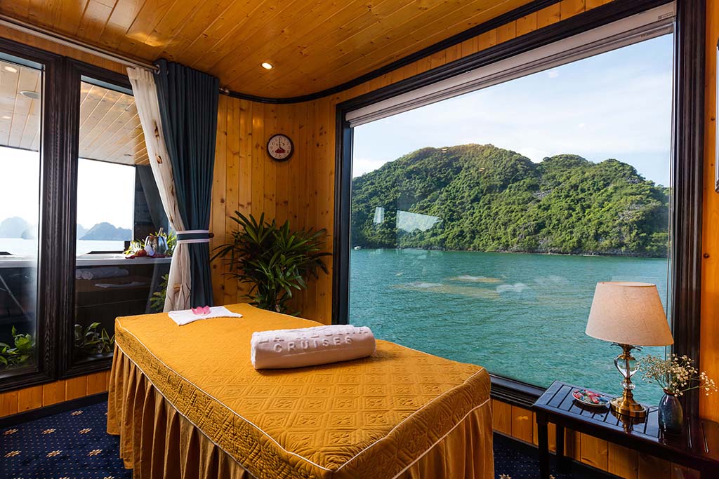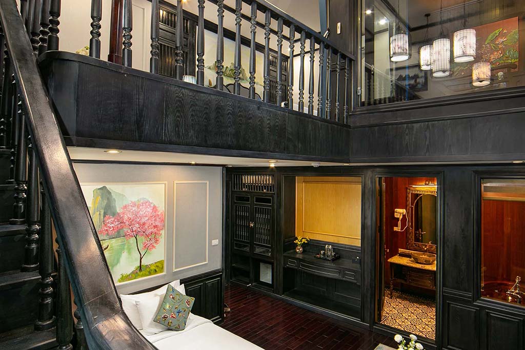 La Regina Grand est une croisière de 5 étoiles en Baie de Lan Ha qui est bien équipée et décorée selon l’architecture traditionnelle d’indochine coloniale des années 1930. Le bateau se compose de 27 spacieuses cabines spacieuses réparties sur 3 ponts avec des portes vitrées du sol au plafond qui ouvre sur un balcon privé. Elle présente le luxe dans les moindres détails.