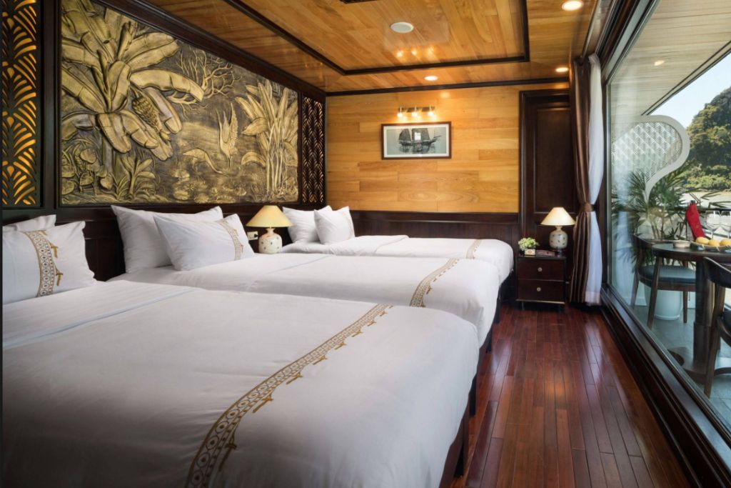 V’Spirit est une croisière de 4 étoiles en Baie de Lan Ha qui est bien équipée et décorée selon l’architecture traditionnelle vietnamienne. Le bateau se compose de 18 cabines avec de grandes portes vitrées qui ouvrent sur un balcon privé. Une grande terrasse équipée de chaises longues sur le pont de soleil sont mises à votre disposition.