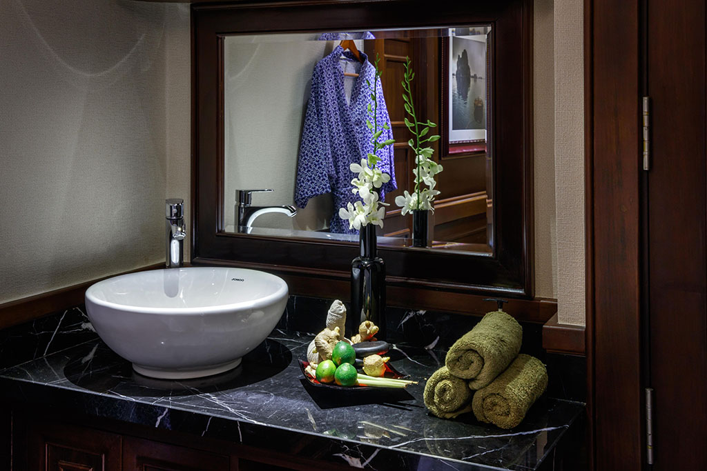 Le Spa « Le Parfum » utilise les meilleures huiles essentielles et herbes pour les soins à bord du bateau. Il propose plusieurs choix de soins : du massage traditionnel utilisé par les empereurs, ou une gamme complète de soins du visage et du corps pour le rajeunissement et l’exfoliation de la peau.