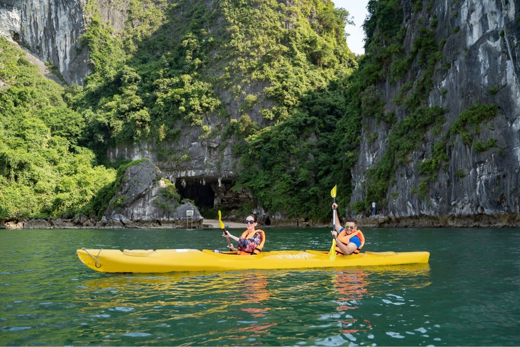 3 jours / 2 nuits: activités ci-dessus + plage à Ba Trai Dao, kayak en baie de Lan Ha, visite d’une ferme de perles