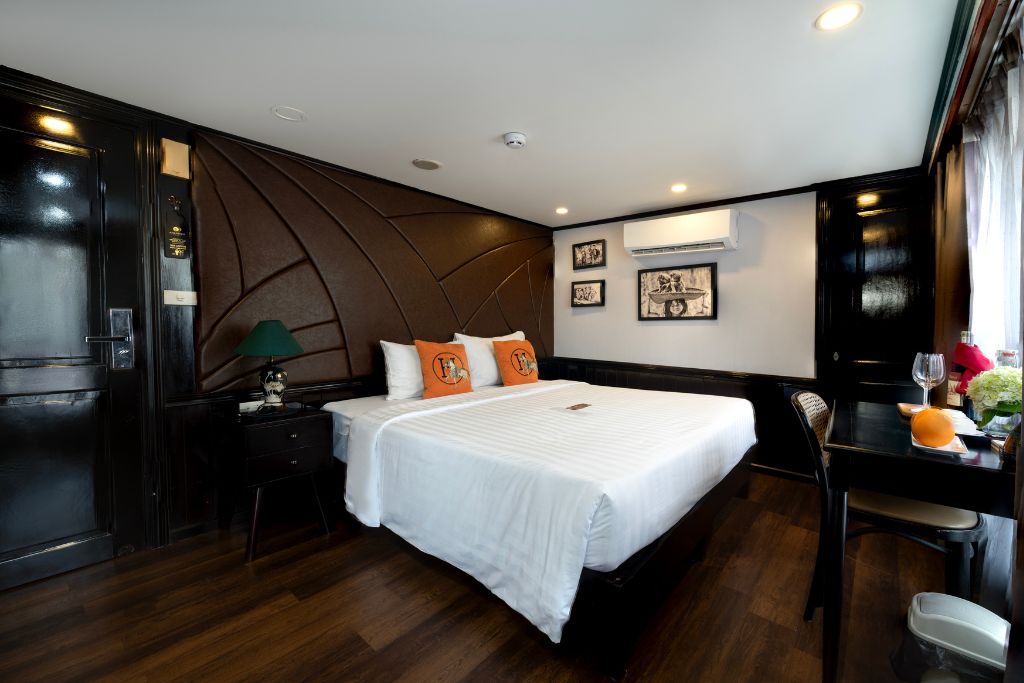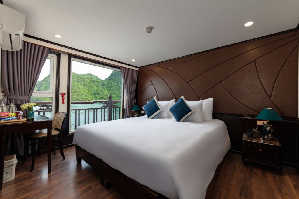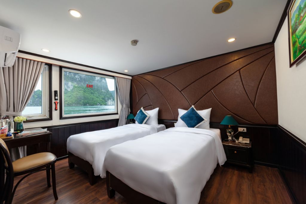 Amanda Halong est un bateau en fer de 25 cabines au design moderne, alliant style classique et européen. Chaque cabine dispose d’une grande fenêtre donnant sur la baie. La croisière mise sur le luxe, le charme et le bien-être, avec bain de pieds aux herbes médicinales inclus.