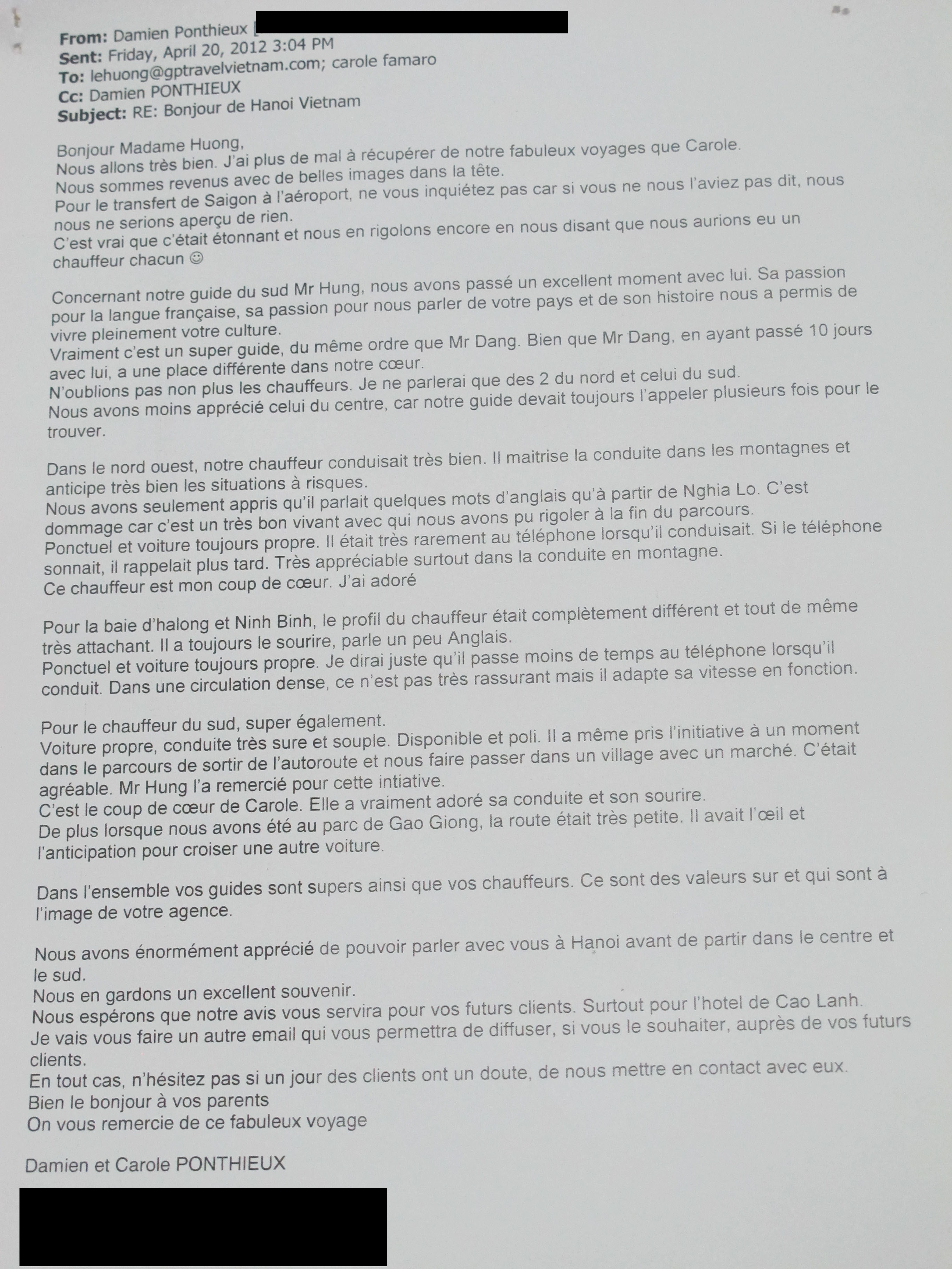 Nous espérons que notre avis vous servira pour vos futurs clients. Surtout pour l’hotel de Cao Lanh.