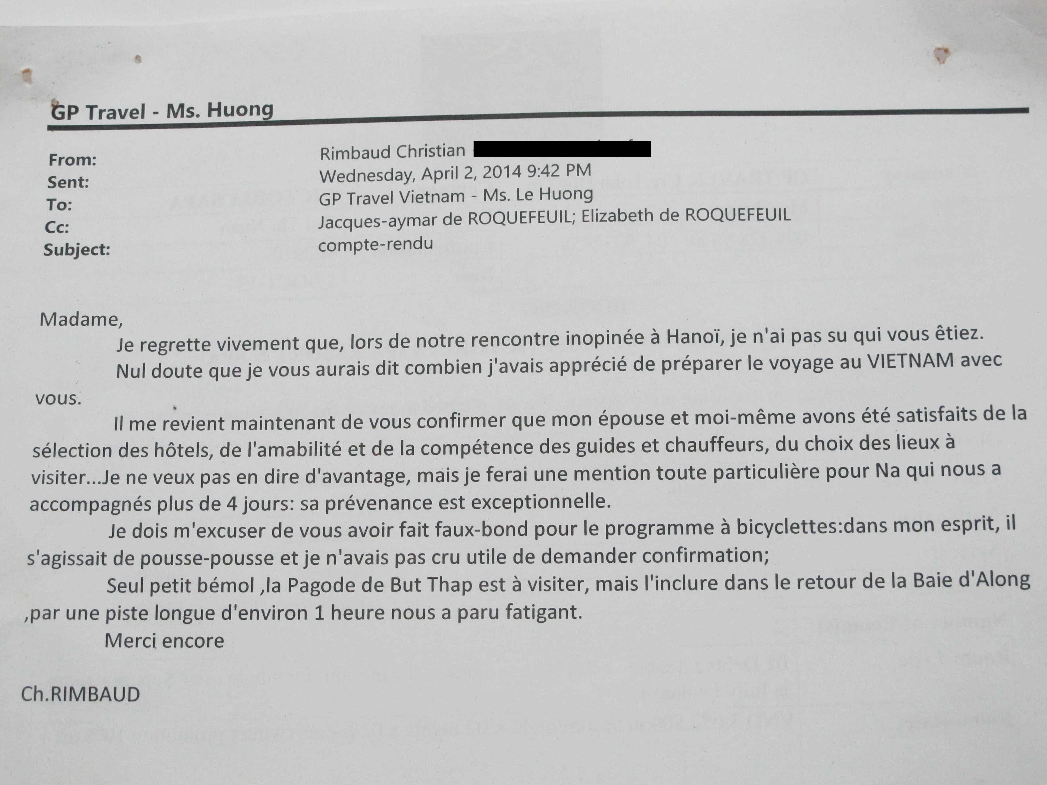Nul doute que je vous aurais dit combien j’avais apprécié de préparer le voyage au VIETNAM avec vous.