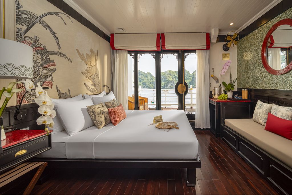 11:30 AM: Visit Thien Canh Son Cave. From the cave entrance, enjoy a panoramic view of Bai Tu Long Bay with dolphin-shaped rocks.