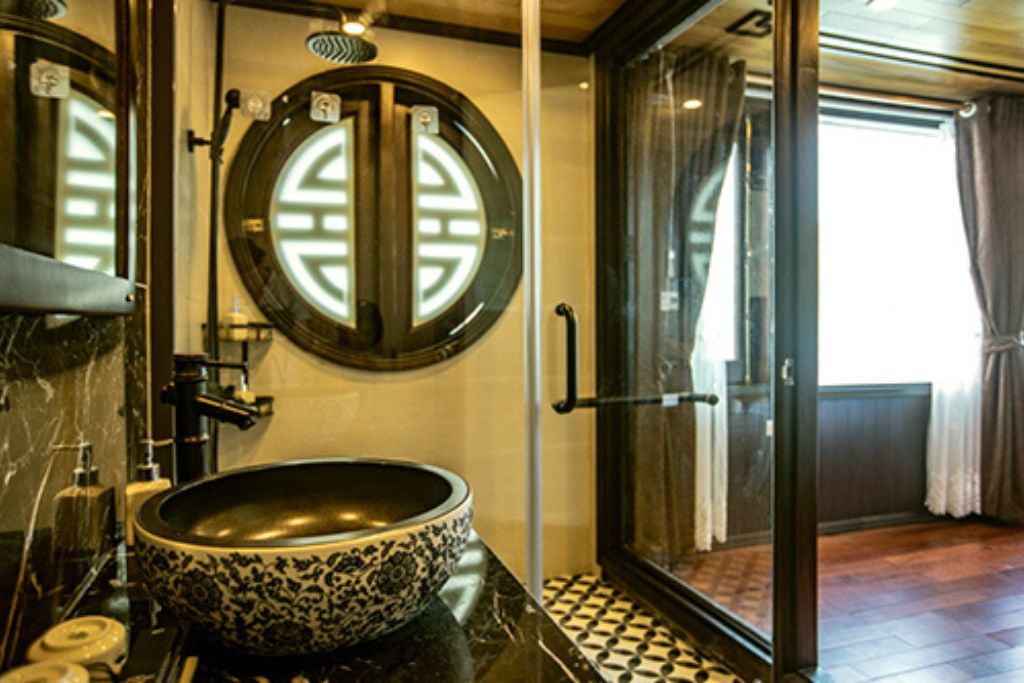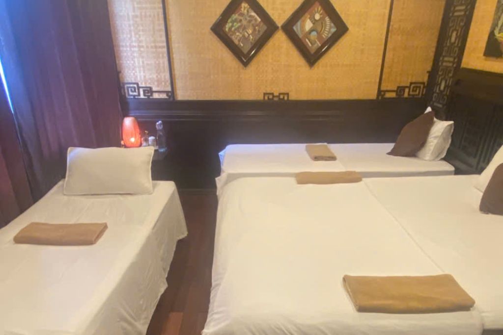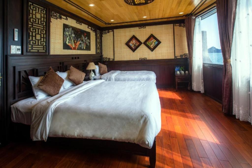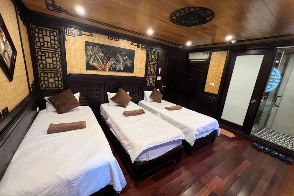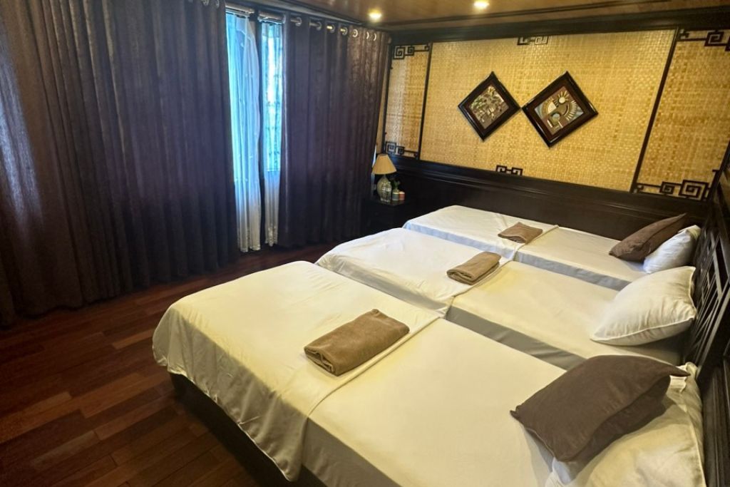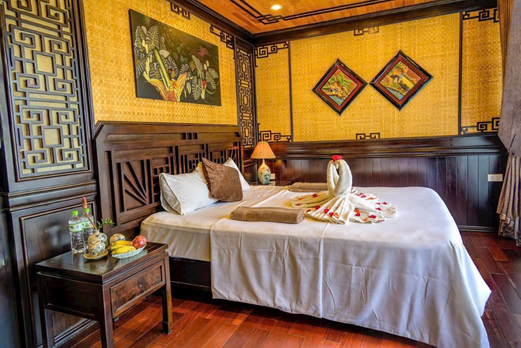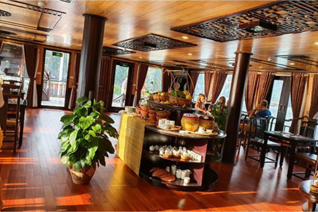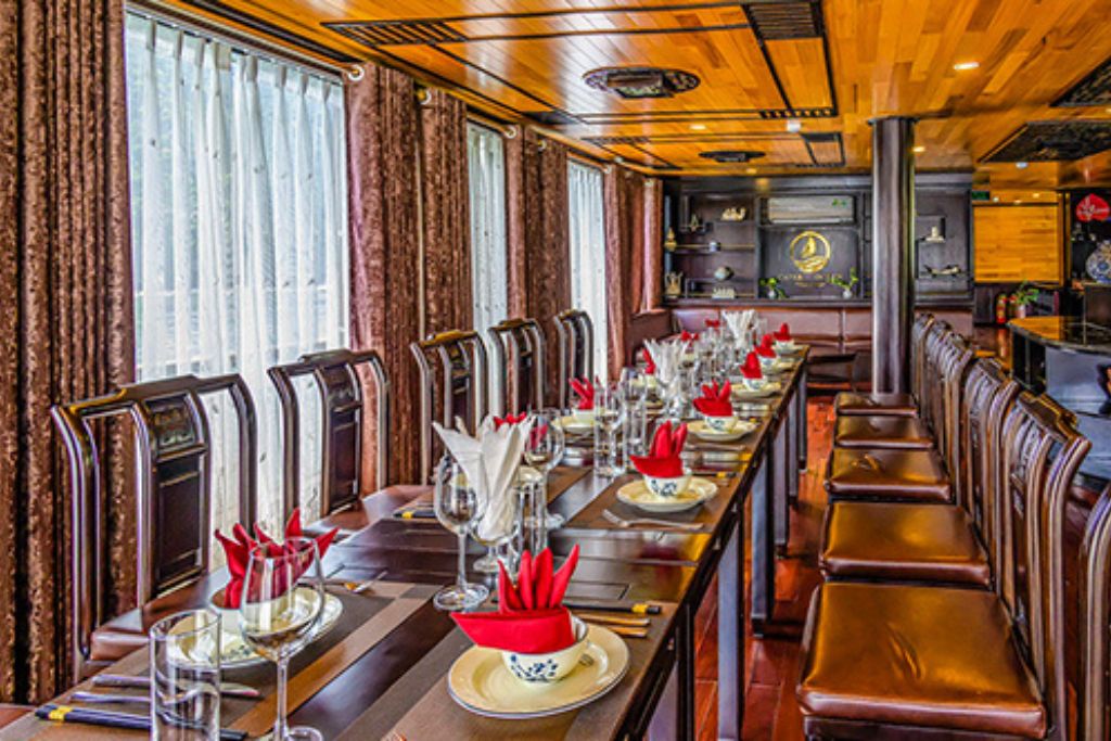 Cozy Boutique is a 3-star steel boat that sails in Lan Ha Bay from Cat Ba Island, a less frequented route in Halong Bay. It is in the shape of an ancient ship with traditional Vietnamese style. The boat has 12 cabins with balconies and large windows. This is one of the good 3- star cruises in Lan Ha Bay.