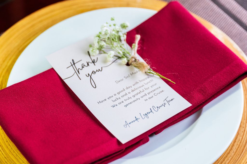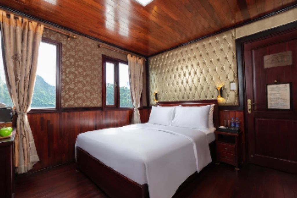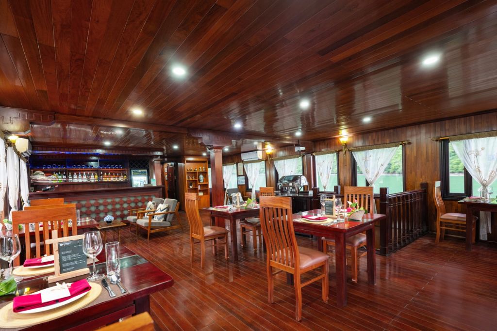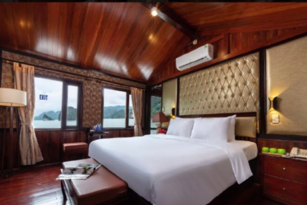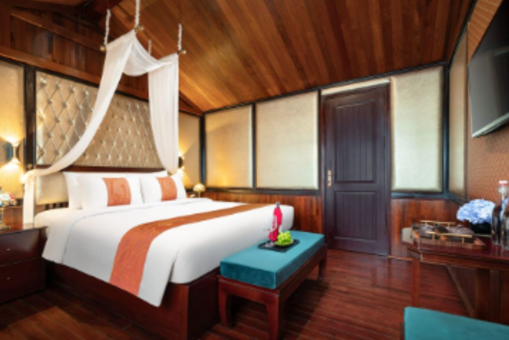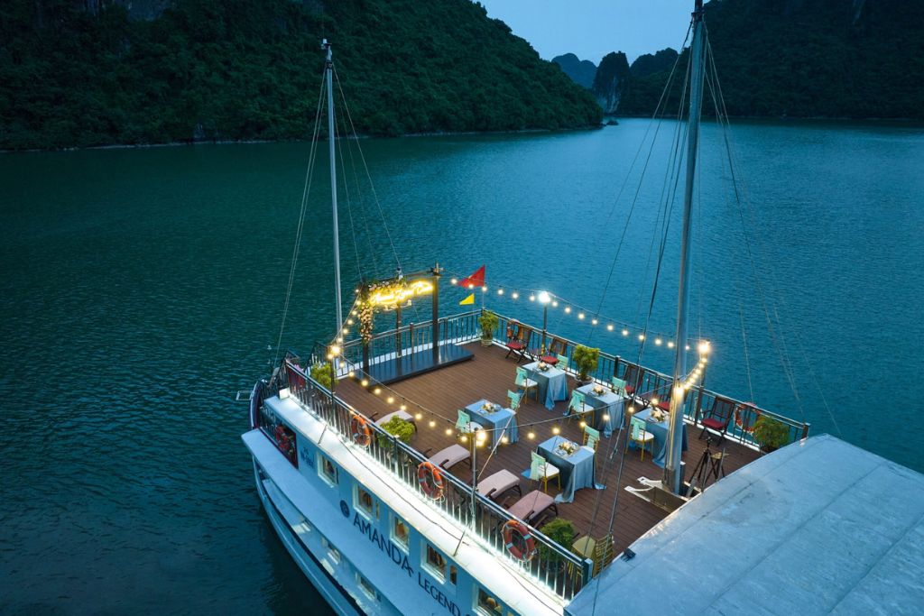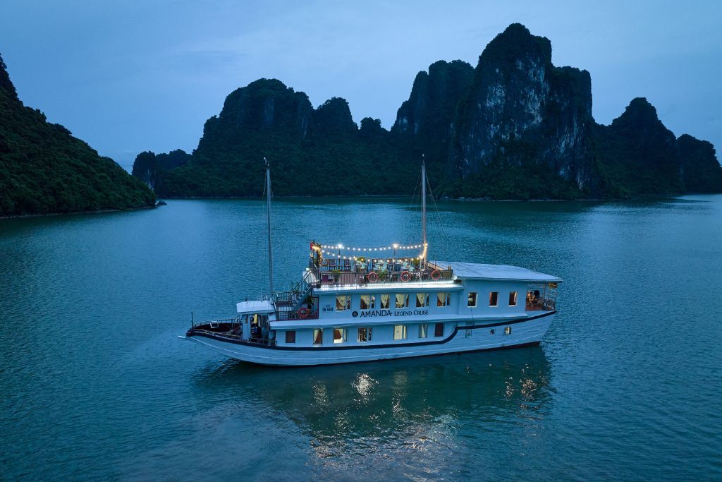 Amanda Legend Cruise is a wooden boat in Halong Bay that has 5 cabins decorated in traditional Vietnamese style and with a wellness theme.
