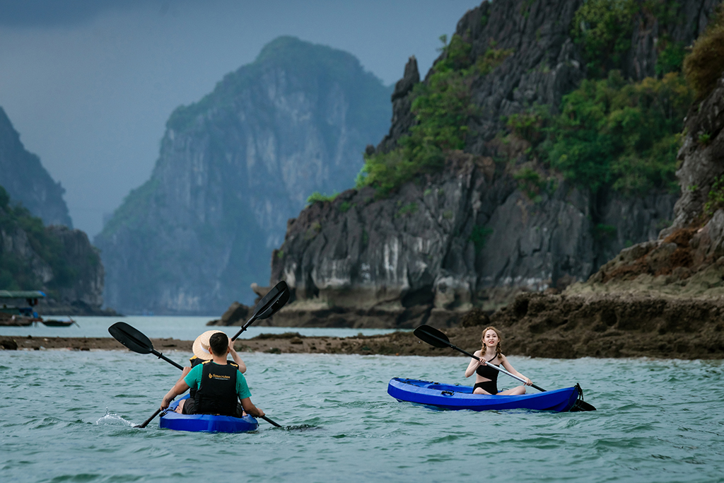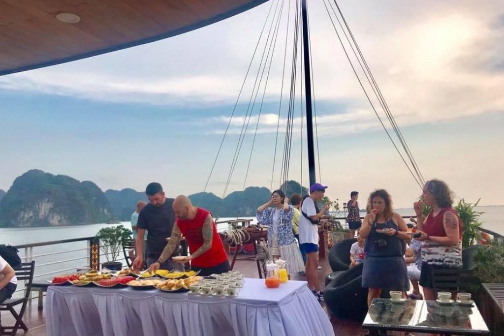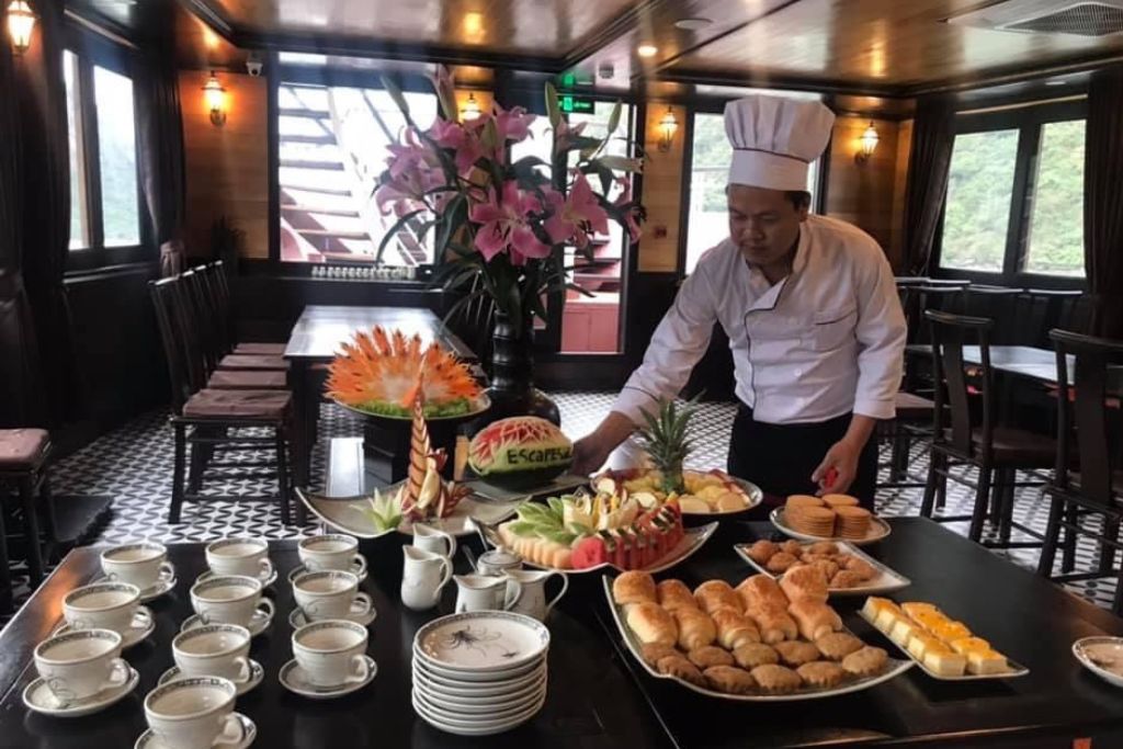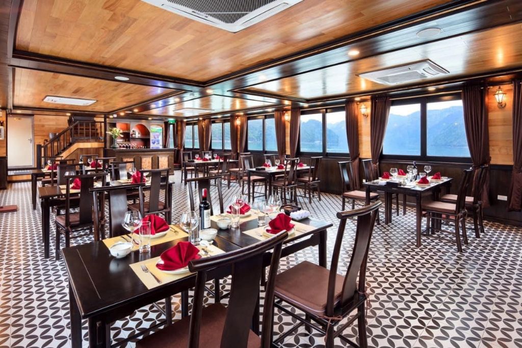 Moonlight Restaurant and Bar: Located on the top-deck Moonlight Restaurant offers not only delectable Vietnamese seafood but also a selection of international dishes. You'll dine while enjoying an exceptional panoramic view of Halong Bay, creating a dining experience that's both sumptuous and scenic.