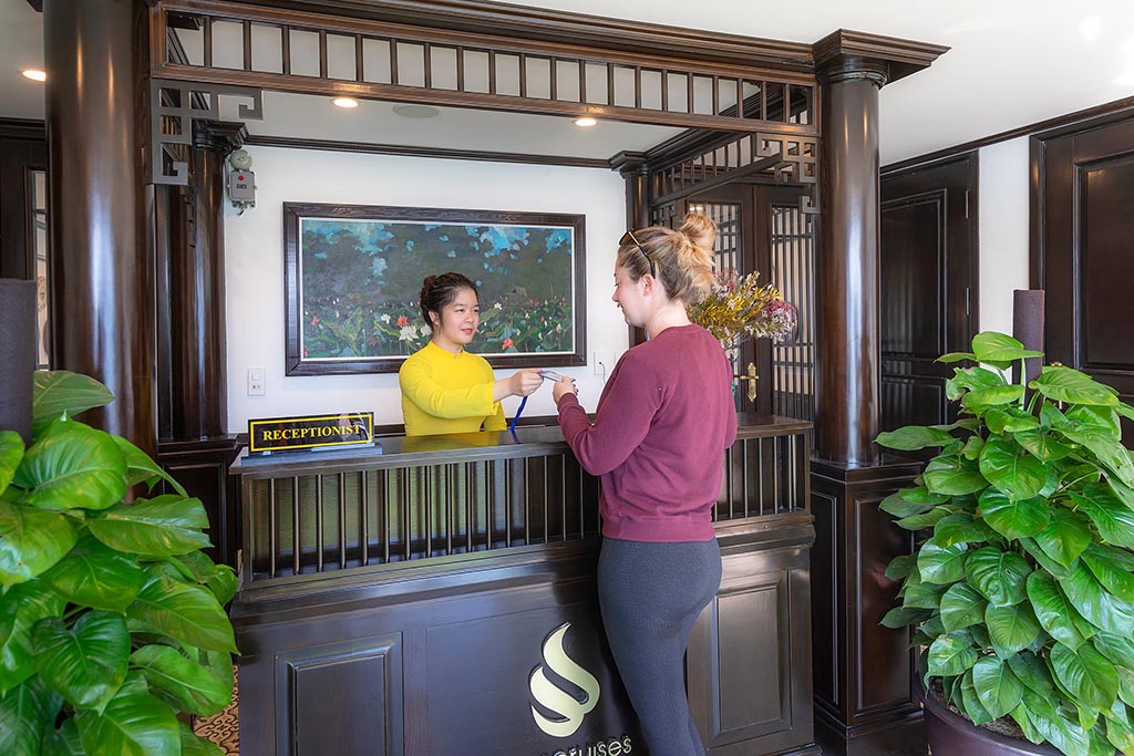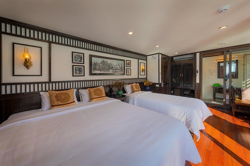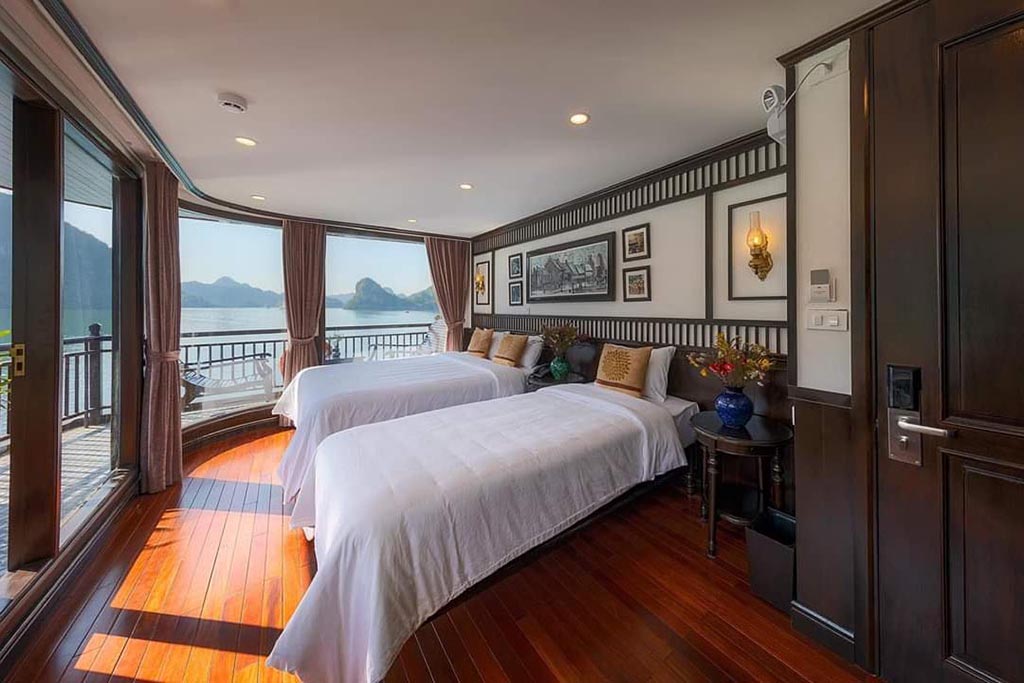 Sena cruise is a 16 cabins boat with a perfect blend of traditional Vietnamese craftsmanship infused with the charm of French boutique design. All cabins have a private balcony and are fitted with parquet floors. A large terrace on the upper deck and a library are at your disposal. There is an English-speaking guide on board. The crew is friendly. Free wifi in the rooms. Sena is a good choice for a 4-star junk