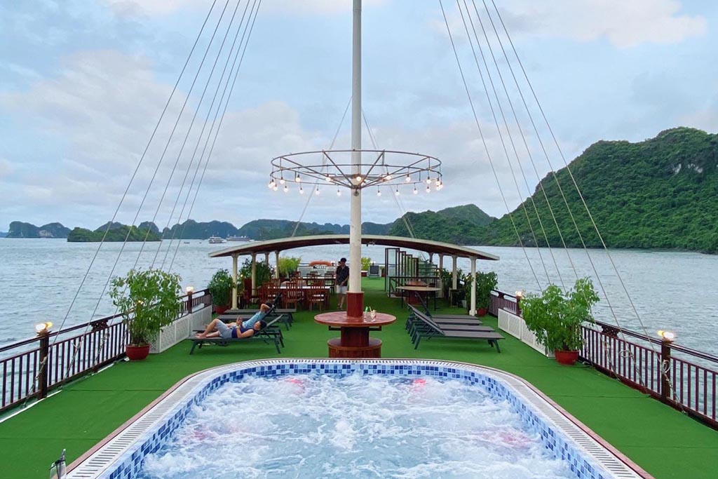 Sundeck: The sundeck provides an ideal setting for relaxation, sunbathing, and soaking in the majestic views of Halong Bay. It's also the perfect spot for capturing beautiful photographs.