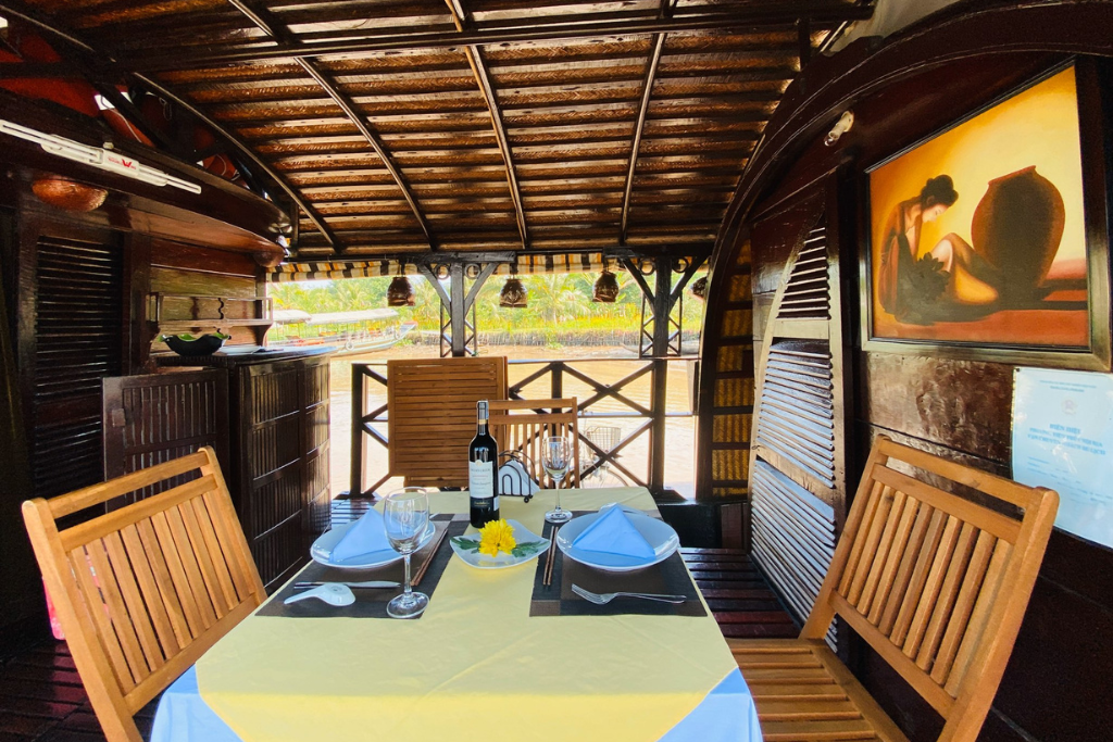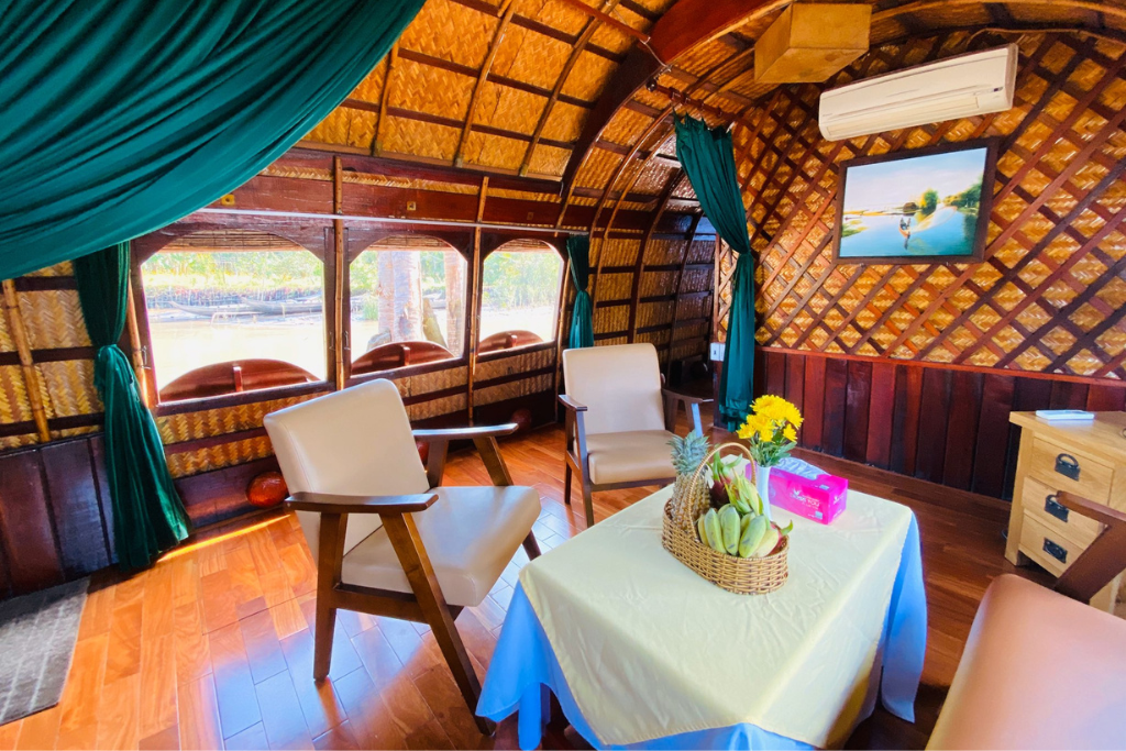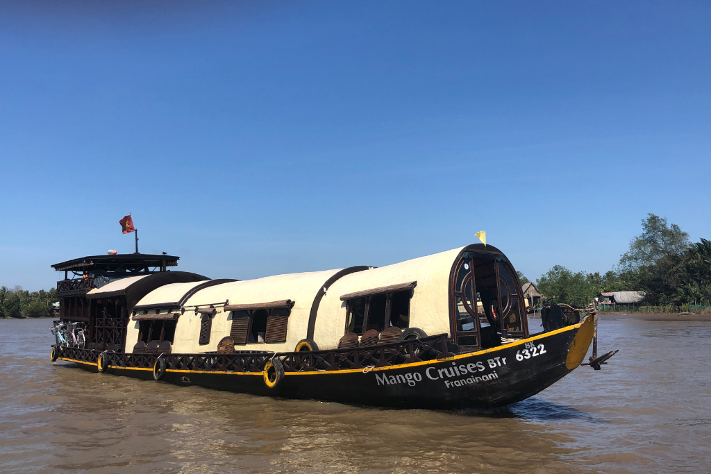 The Mango Sampan is a traditional high-quality wooden boat with 2 cabins, offering private cruises through the untouched waterways of the Mekong Delta. Perfect for families or friends, it combines authentic countryside exploration with local encounters, by bike or on foot.