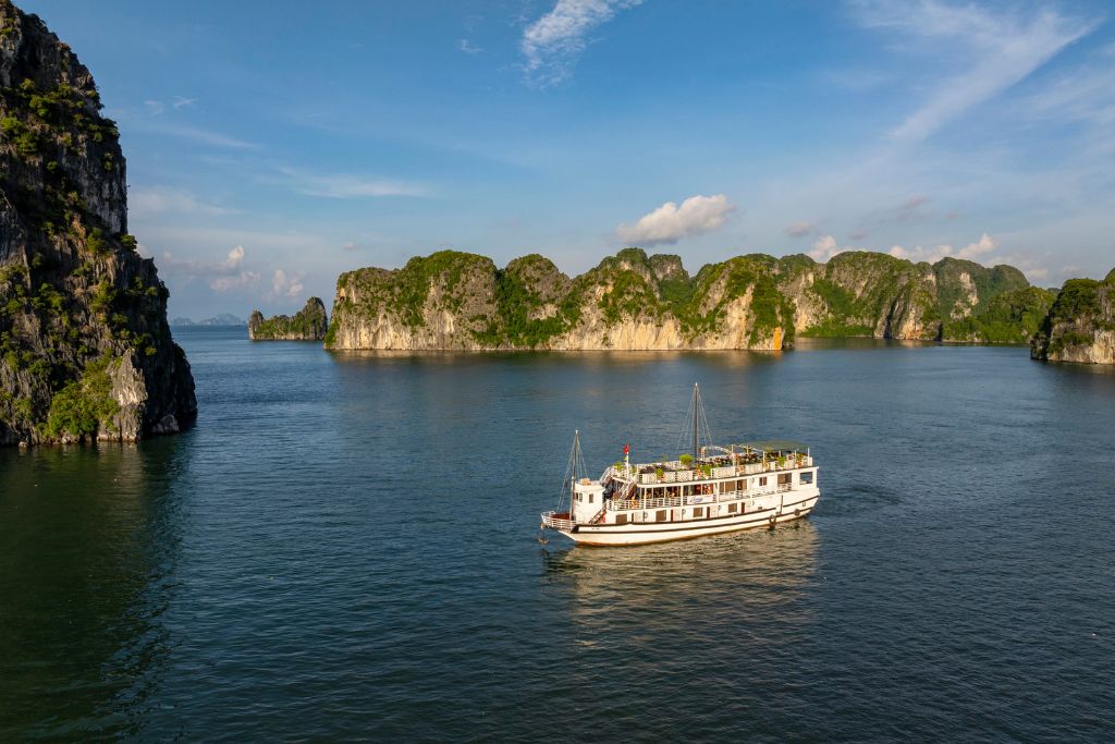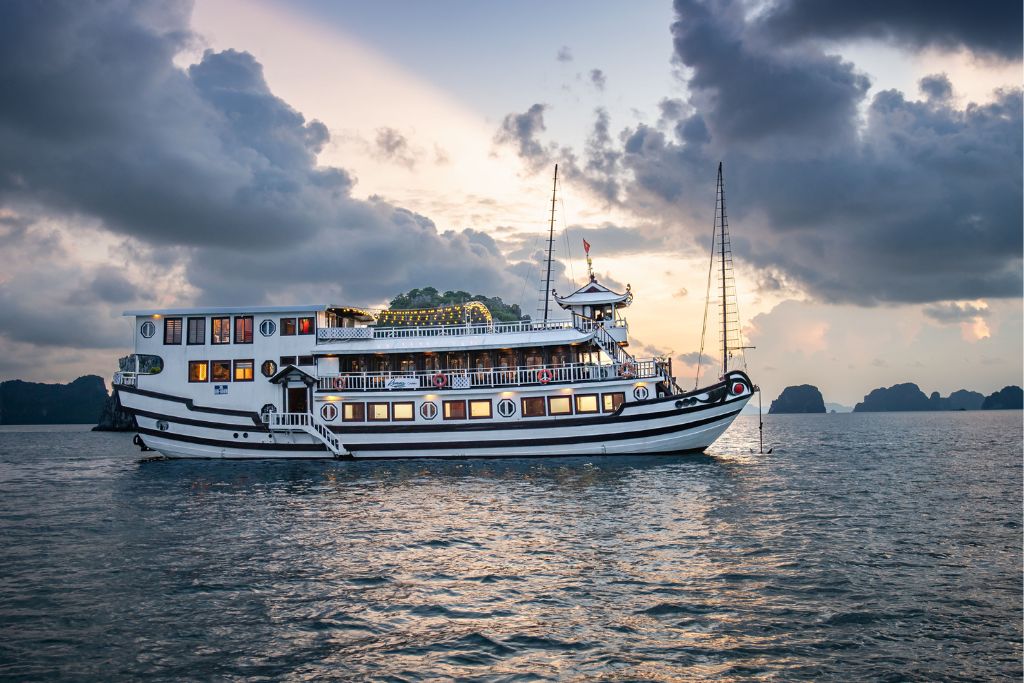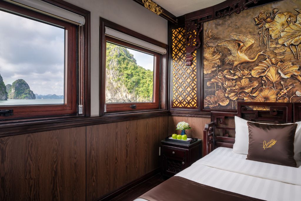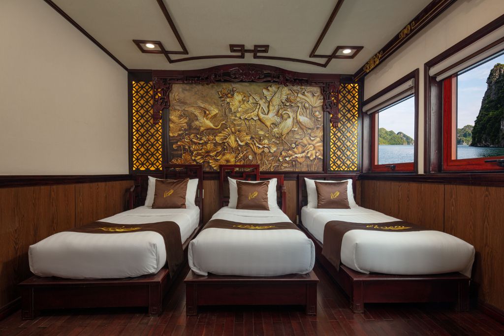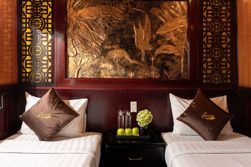 La croisière Renea comprend 4 jonques de charme en bois de 11 cabines, 12 cabines , 13 cabines et 14 cabines qui sont conçues dans un style traditionnel d’inspiration orientale, et possèdent une terrasse bien exposée et un équipage sympathique. La croisière Renea vous propose des excursions dans la Baie de Bai Tu Long selon un itinéraire loin des sentiers battus. À bord du bateau, il y a un guide anglophone. La croisière Renea est un choix idéal pour la boutique croisière de 3 étoiles en Baie de Bai Tu Long.