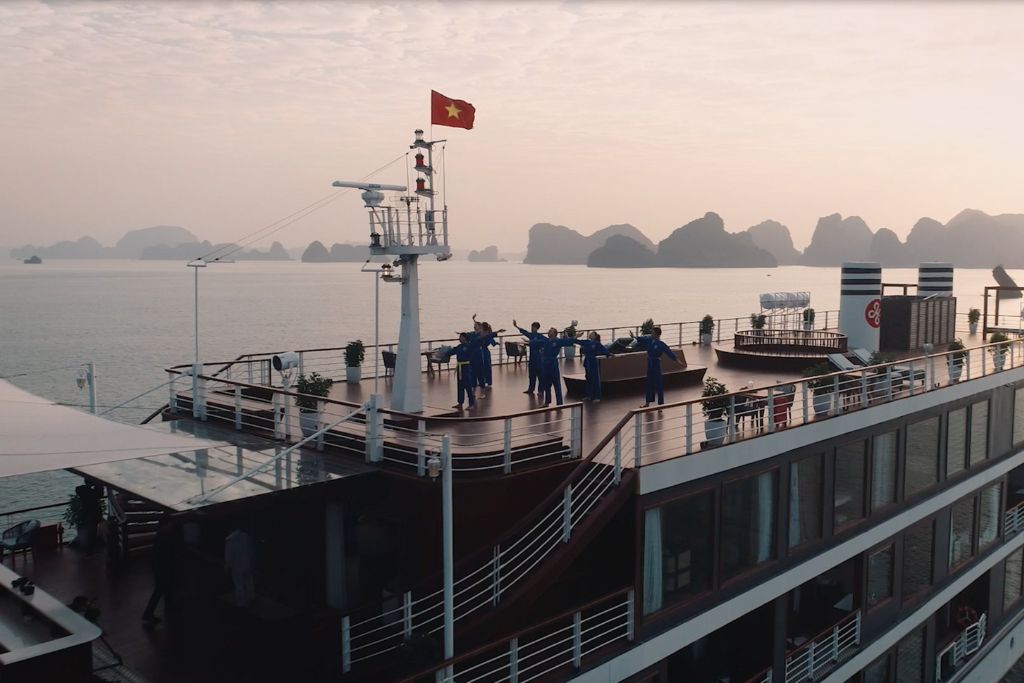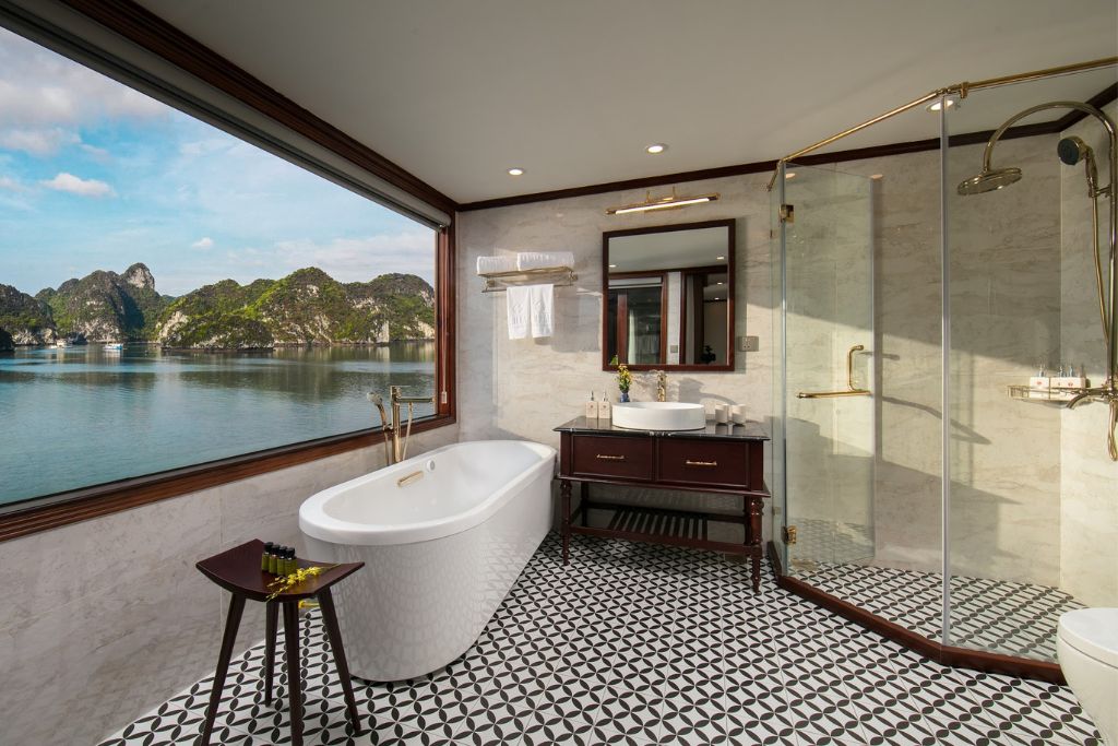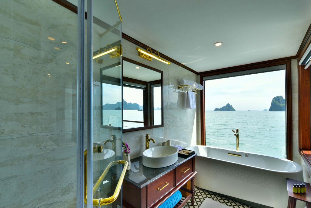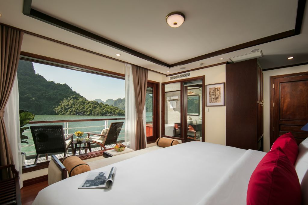 Heritage Cruise : luxe et art sur la baie de Lan Ha.Avec ses 20 cabines de style indochinois, ce bateau vous offre une expérience culturelle unique. Chaque cabine dispose d’un balcon privé et d’une baignoire pour un confort absolu.Profitez des installations haut de gamme à bord: une grande piscine, un salon piano, une galerie d’art et une terrasse spacieuse.Un guide anglophone et une équipe attentive sont à votre service. Le Wi-Fi est gratuit et un service de massage est disponible en supplément.