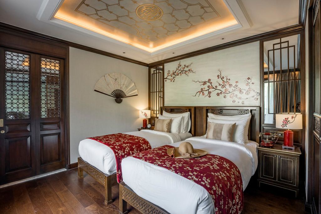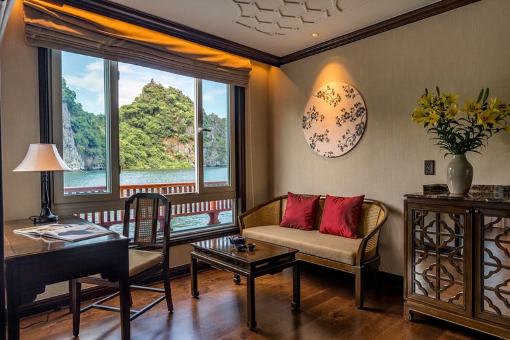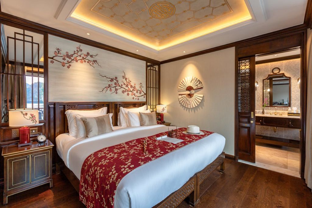 Ylang est une croisière luxueuse de petite taille en Baie de Lan Ha qui est bien équipée et décorée selon l’architecture traditionnelle asiatique et vietnamien. Une fois monter à bord, vous avez l’impression d’être dans un ancien royaume royal : des meubles en bois de marbre orné de motifs décoratifs vietnamiens par excellence tels que des fleurs de lotus et des portes en bois ornées.