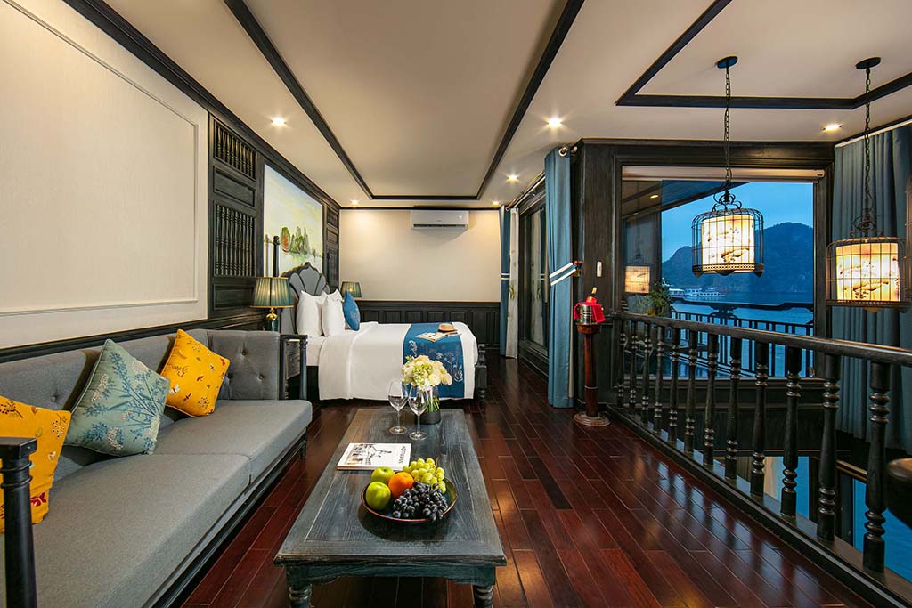 La Regina Grand est une croisière de 5 étoiles en Baie de Lan Ha qui est bien équipée et décorée selon l’architecture traditionnelle d’indochine coloniale des années 1930. Le bateau se compose de 27 spacieuses cabines spacieuses réparties sur 3 ponts avec des portes vitrées du sol au plafond qui ouvre sur un balcon privé. Elle présente le luxe dans les moindres détails.