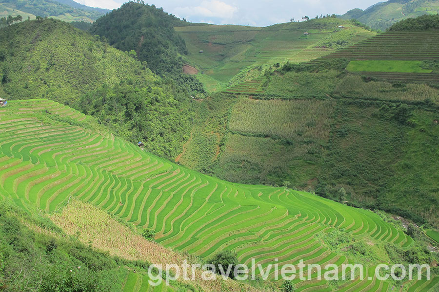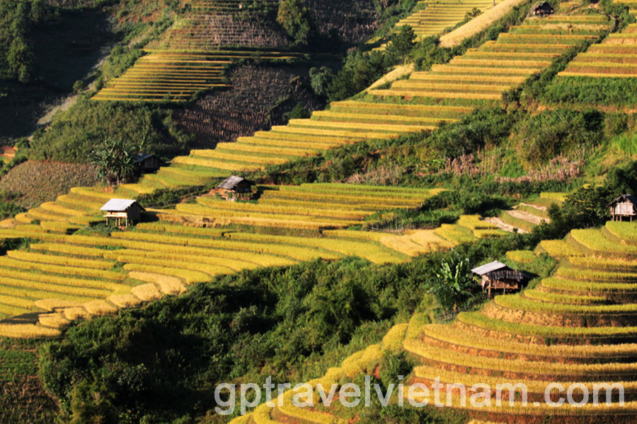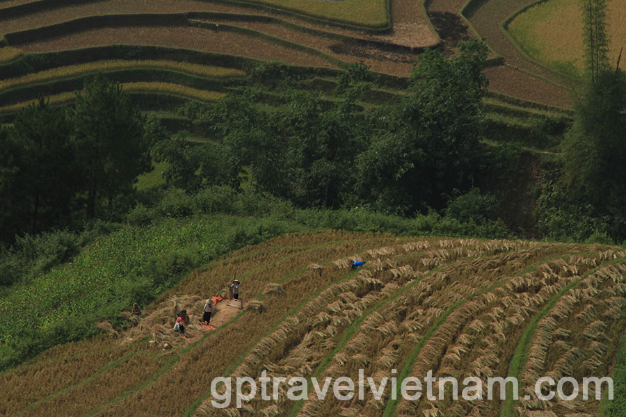 Vous partirez ensuite au cœur des rizières en terrasse classées Patrimoine Nationale : La Pan Tan, Che Cu Nha et De Su Phinh. Si vous le souhaitez, vous pourrez faire une marche de 6km à travers les plus belles rizières en terrasse de La Pan Tan.